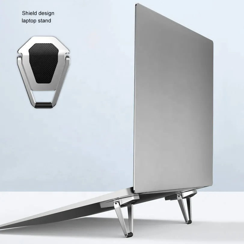 - 2PCS Triangular Design: Made from lightweight zinc alloy with a stable triangular structure, this stand features rubber pads to keep your laptop secure and scratch-free, along with non-slip rubber feet and smooth edges for added safety.